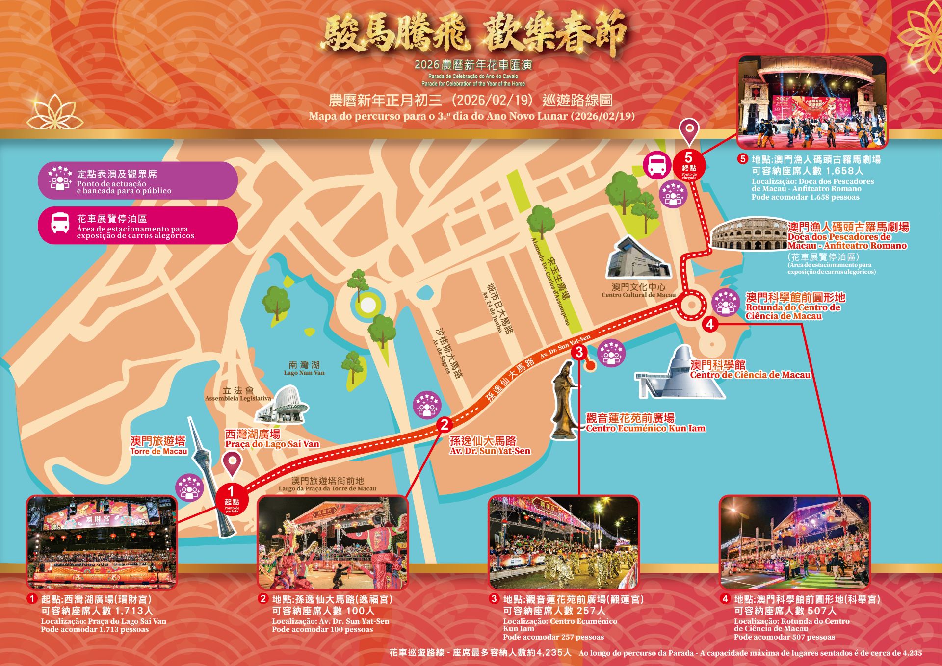 1.º espectáculo de fogo-de-artifício: 19 de Fevereiro de 2026, pelas 21:45 horas (3.º dia do Ano Novo Lunar)