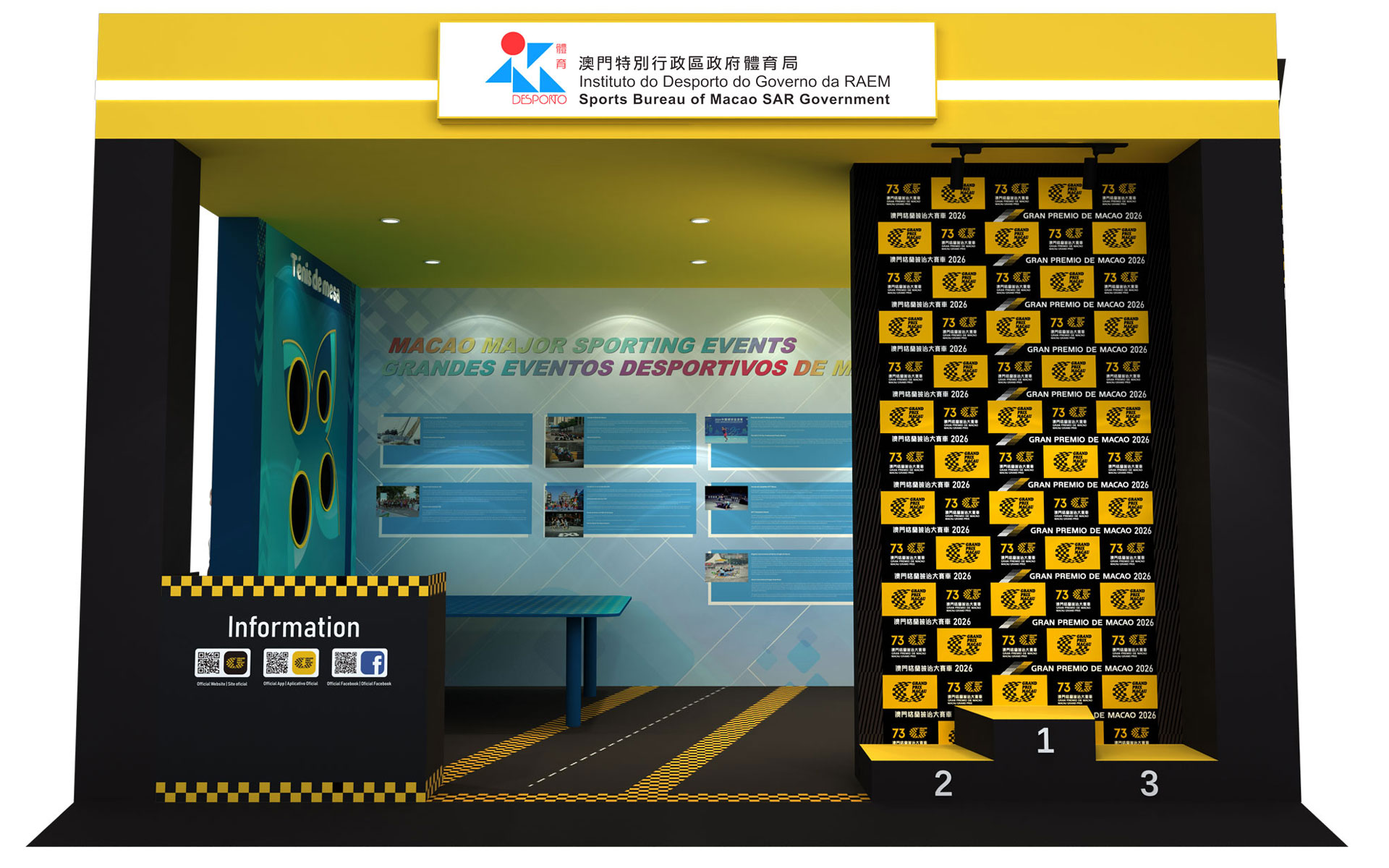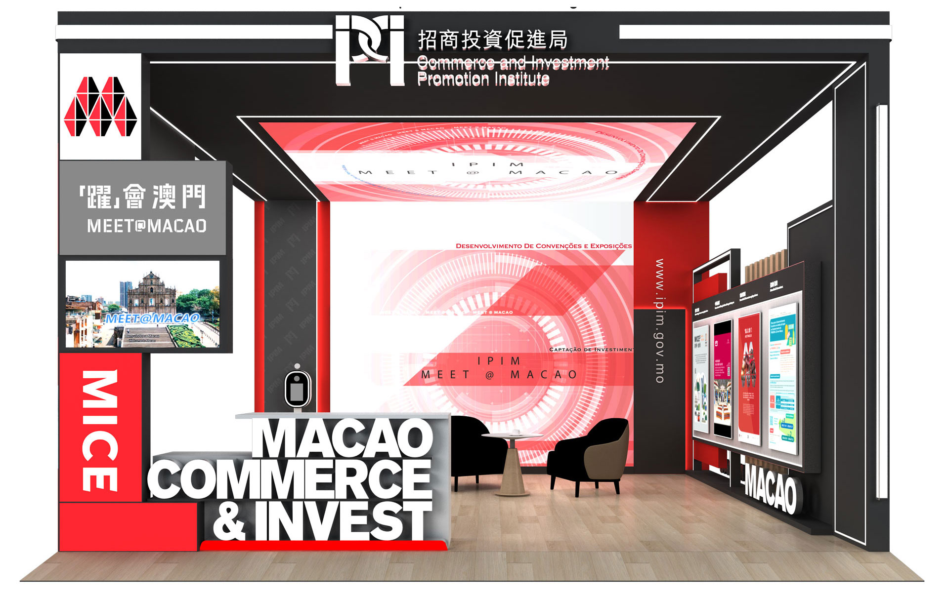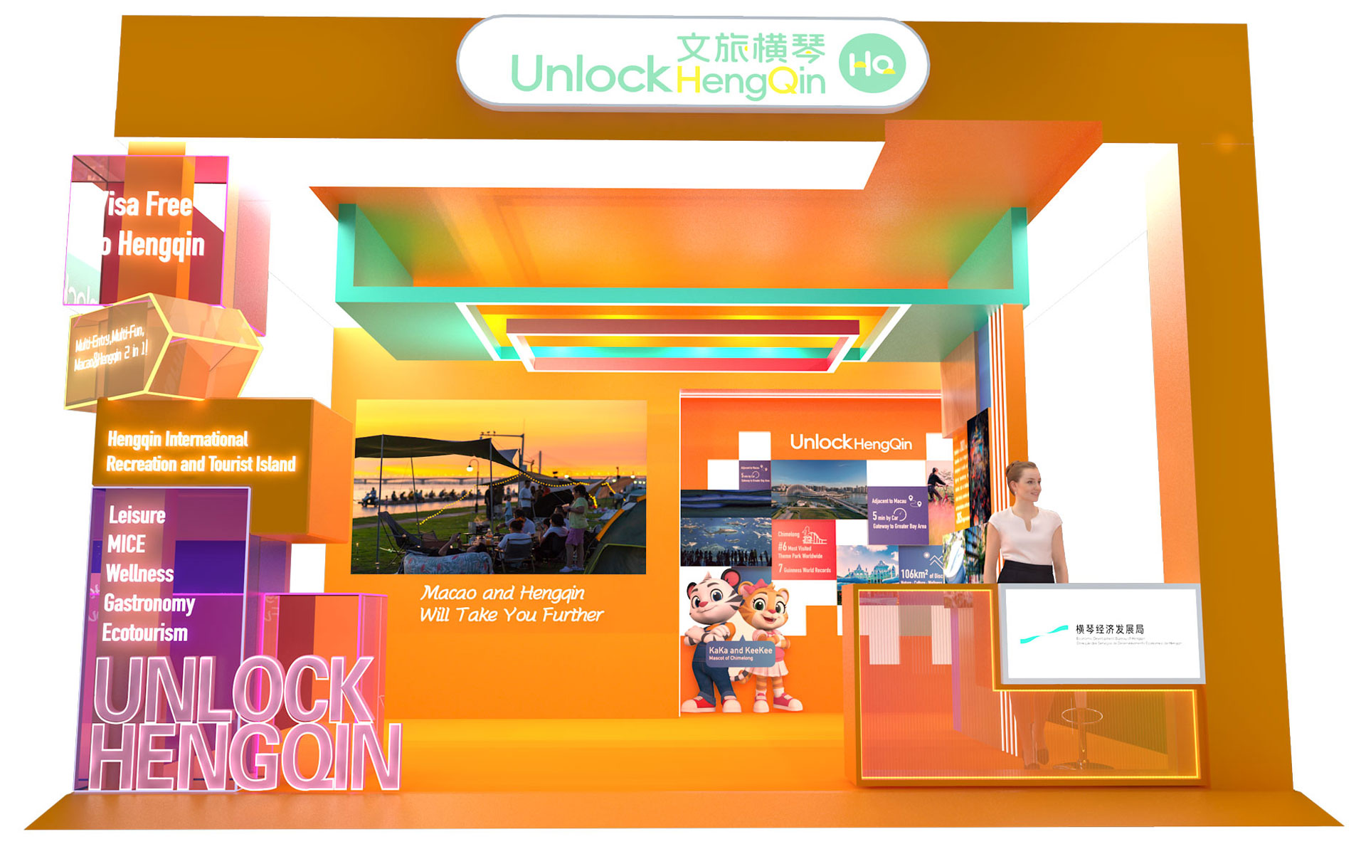 展位设计融合“中西共生”理念,区域规划分明,设有主舞台及表演区、多个政府部门展示区,以及丰富的中华文化体验区,生动展现澳门回归后的多元面貌与年度盛事。特色区域包括:“非遗舞狮展示区”、“澳门传统裙褂展示区”、“从太阳门到大三巴互动游戏区”、“澳门格兰披治大赛车体验区”及“云游澳门VR体验区”。透过互动体验,让访客感受澳门兼具东方传统与现代节奏的双重魅力,提升澳门作为旅游首选目的地的吸引力。