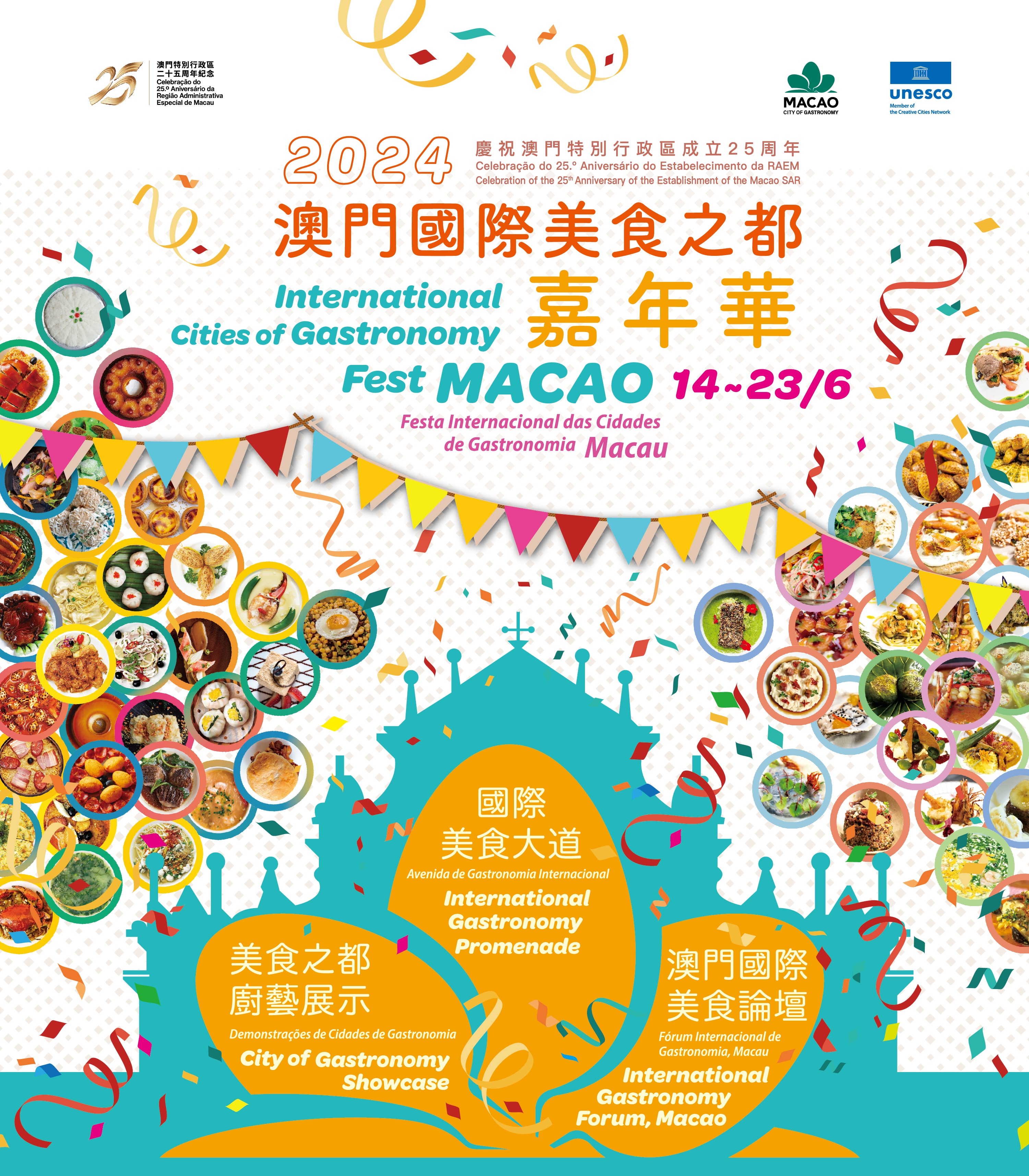 由旅遊局主辦的大型美食活動,將聯動多個聯合國教科文組織創意城市網絡(UCCN)的美食之都,透過美食展銷攤位、廚藝展演及美食論壇,打造一項高品質及具知名度的味蕾盛宴,讓美食成為澳門和世界互相連結的共同語言,體驗本澳特色的美食文化,感受澳門獨特的“創意城市美食之都”魅力。